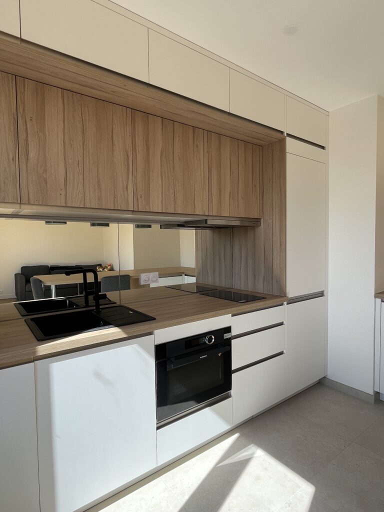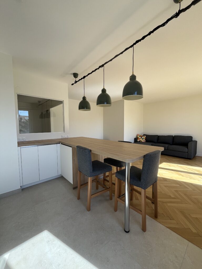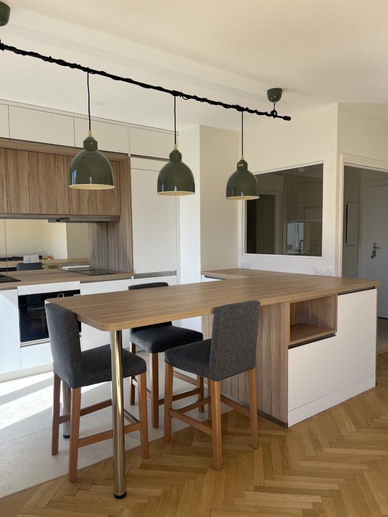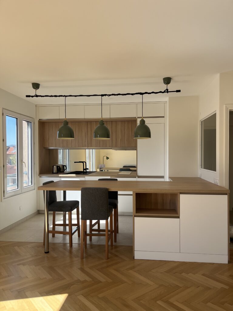 Cuisine contemporaine chaleureuse ouverte sur séjour